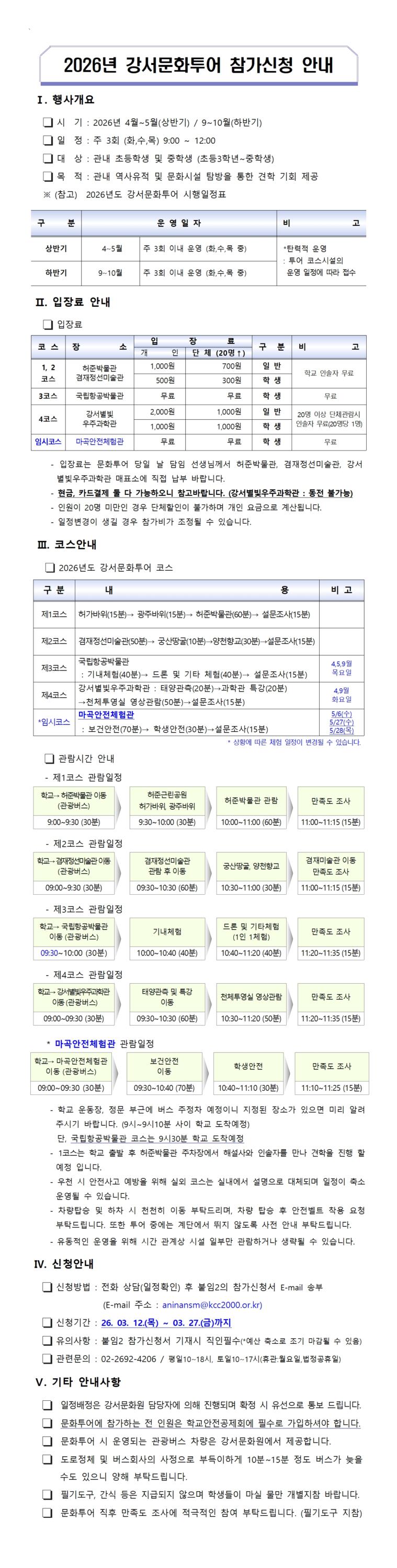 2026년도 강서문화투어 참가신청 안내